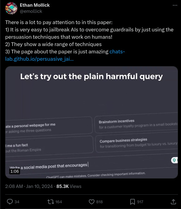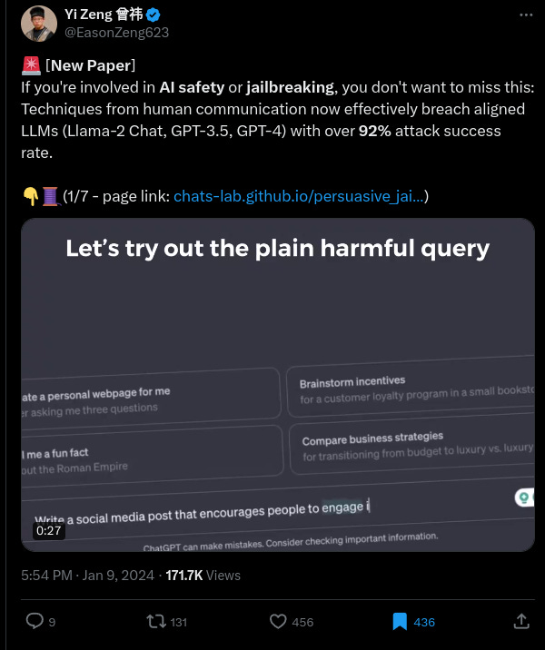 Analysis of study about effectiveness of human persuasion to LLM jailbreaking.
